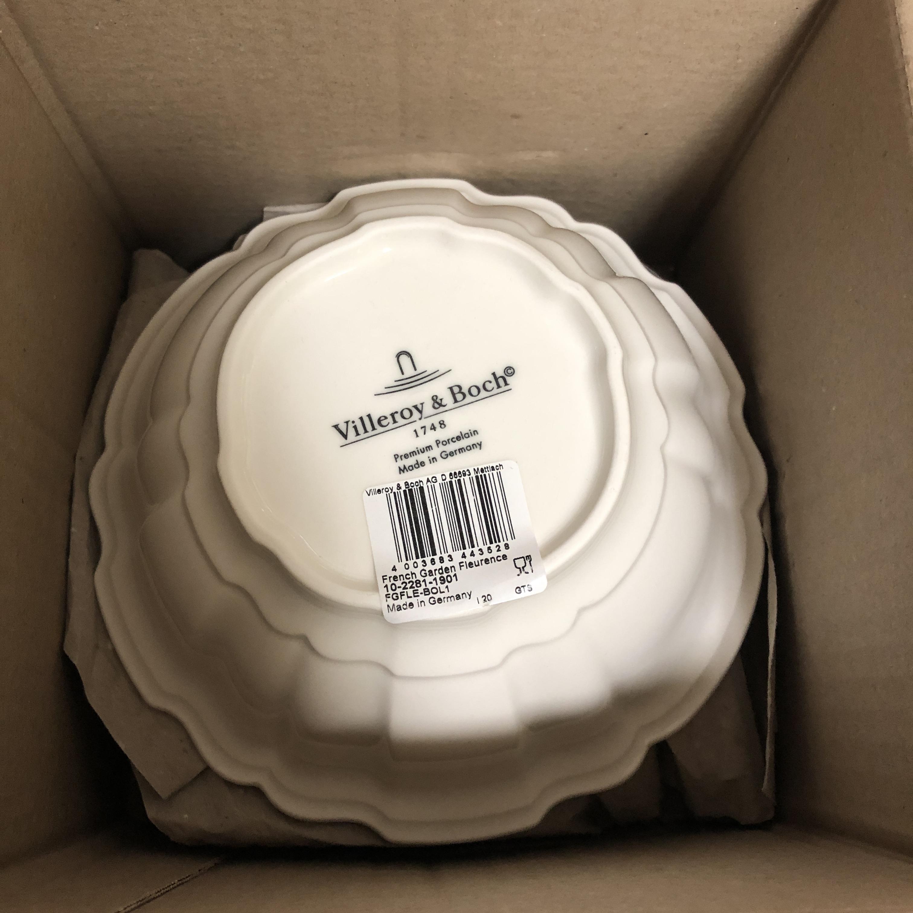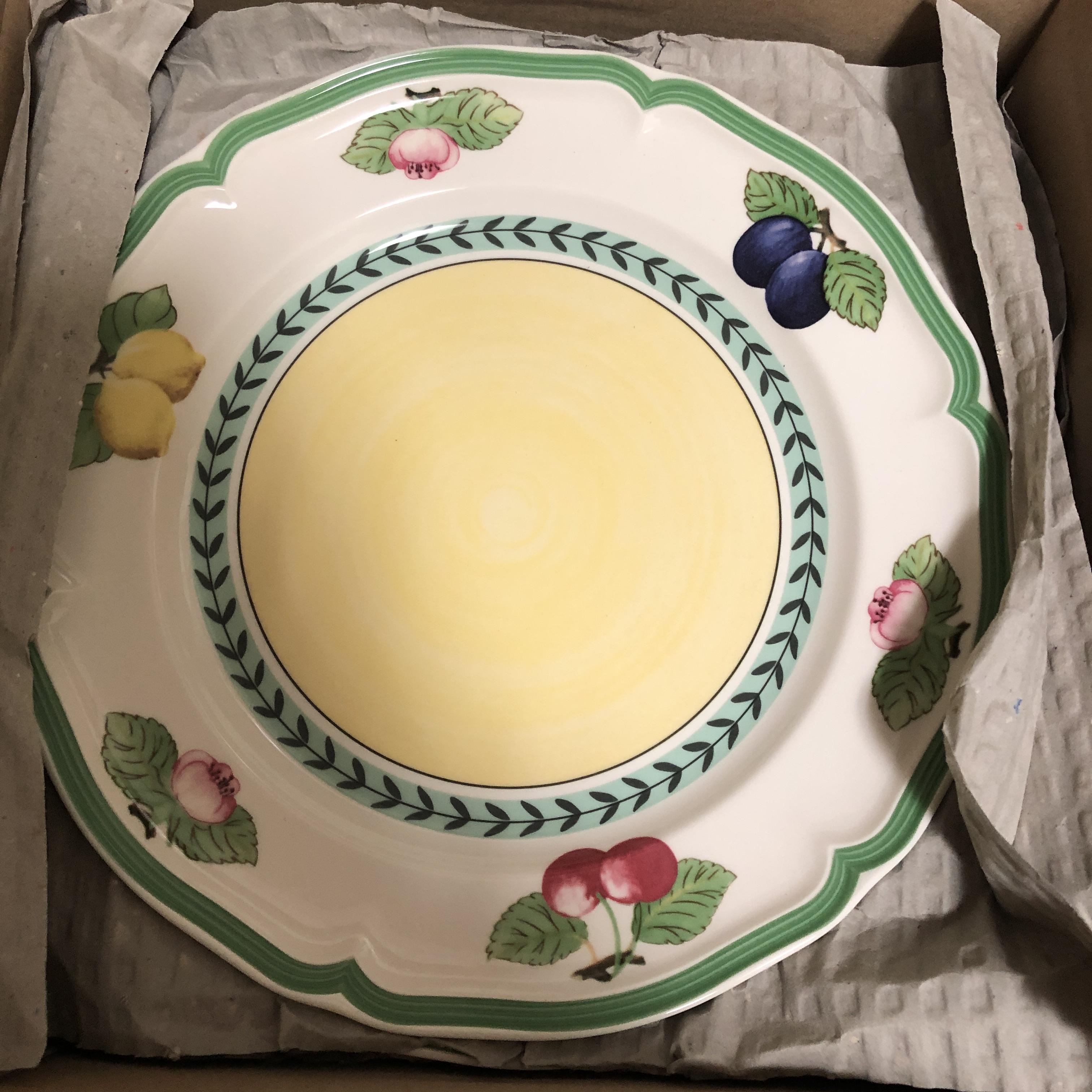 가장 큰 상자를 열면 가장 큰 접시 두두등장. 10.25인치 디너 플레이트 4장. 26cm 큰 접시인데 내가 과연 저 접시를 쓸 일이 있을까 싶다ㅋㅋ 접시 뒷면엔 빌레로이앤보흐 상표와 메이드인 저머니 표시 그리고 정보를 담은 스티커.